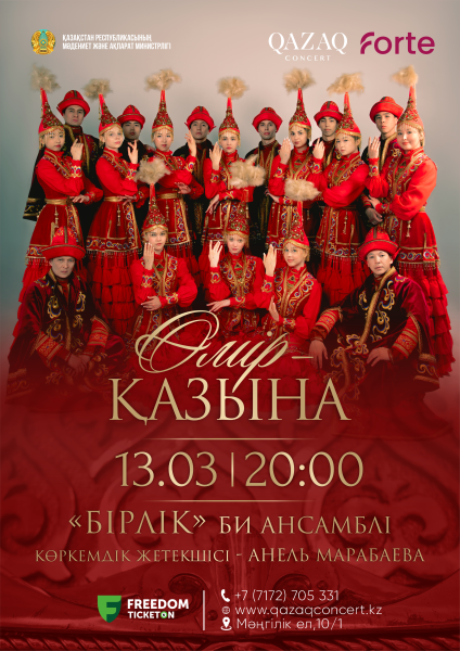 Танцевальный ансамбль «BIRLIK» приглашает вас на сольный концерт «Жизнь сокровище». Это уникальное культурное событие глубокое философское исследование образа женщины на разных этапах жизни в казахской культуре, воплощенное в изяществе и символике сценических движений.