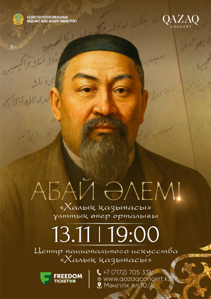 Қазақконцерт сүйікті көрермендерін ұлы қазақ ақыны, данышпан ойшыл Абай Құнанбайұлының 180 жылдығына арналған «АБАЙ ӘЛЕМІ» атты музыкалық кешке шақырады.