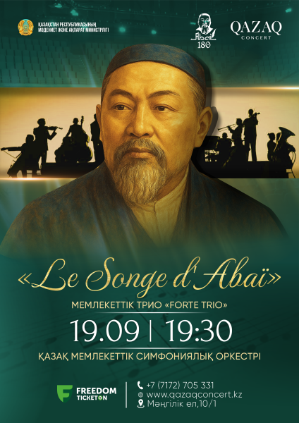 Қазақконцерт сахнасында алғаш рет әлемдік музыка мен Абай мұрасына заманауи көзқарасты ұштастырған ерекше бағдарлама ұсынылады. Бұл кеште музыка мәдениеттер мен дәуірлер арасындағы терең философиялық диалог көрінісіне айналып, «FORTE TRIO» мемлекеттік триосы мен Қазақ мемлекеттік симфониялық оркестрі маэстро Мария Бенюмованың (Австрия) дирижерлік етуімен өнер көрсетеді.