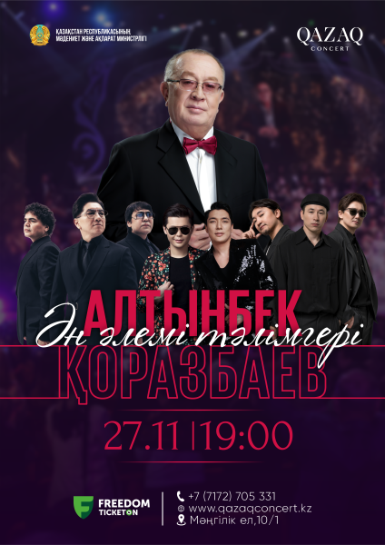 Қазақконцерт Қазақстанның Халық әртісі, Мемлекеттік сыйлықтың лауреаты, Қырғыз Республикасының Еңбек сіңірген әртісі, композитор Алтынбек Қоразбаевтың «Ән әлемі тәлімгері» атты шығармашылық кешіне шақырады.