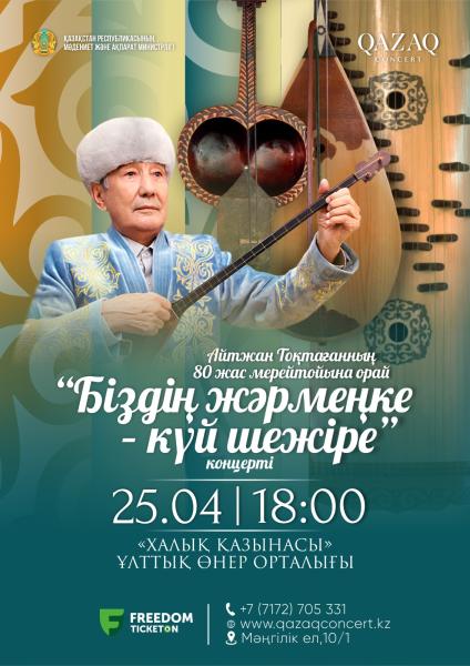 Қазақконцерт белгілі күйші, фольклортанушы, Қазақстанның еңбек сіңірген өнер қайраткері Айтжан Тоқтағанның 80 жас мерейтойына орай «БІЗДІҢ ЖӘРМЕҢКЕ» - күй шежіре концертін ұсынады.