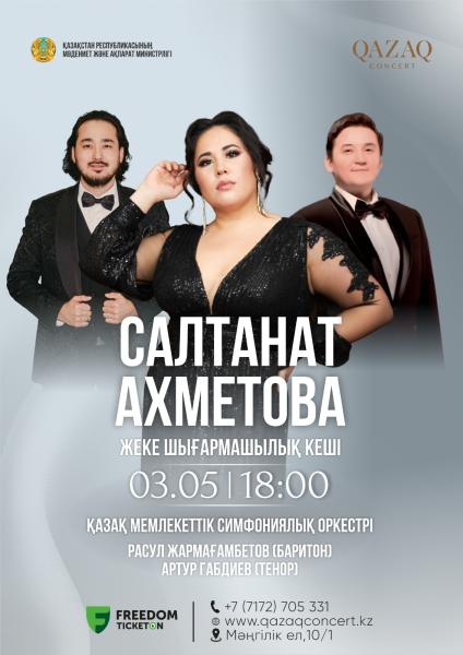 Салтанат Ахметова опера әншісі (сопрано), Қазақстанның еңбек сіңірген қайраткері. Ол Италияның Озимо қаласындағы Вокал өнері академиясында тағылымдамадан өткен. 2008 жылы Қазақ ұлттық музыка академиясын «Жеке ән айту» мамандығы бойынша тәмамдады. 2009 жылы Италияның Озимо қаласындағы Вокалды өнер академиясында (Accademia d’Arte Lirica) тағылымдамадан өтіп, сондай-ақ, әлемге танымал музыканттардың шеберлік сабақтарына қатысқан.