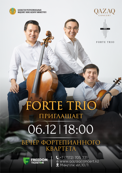 «FORTE TRIO» мемлекеттік триосы фортепиано квартетінің музыкалық кешіне шақырады.
