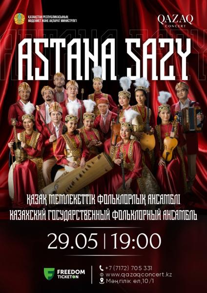 Роза Бағланова атындағы «Қазақконцерт» мемлекеттік академиялық концерттік ұйымы «Астана сазы» Қазақ мемлекеттік фольклорлық ансамблінің концертіне шақырады.